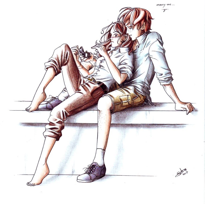 harry deviantart potter hermione ron nami64 weasley proposal nami86 granger pants zerochan arm fanart jefferson martha support brown anime confession